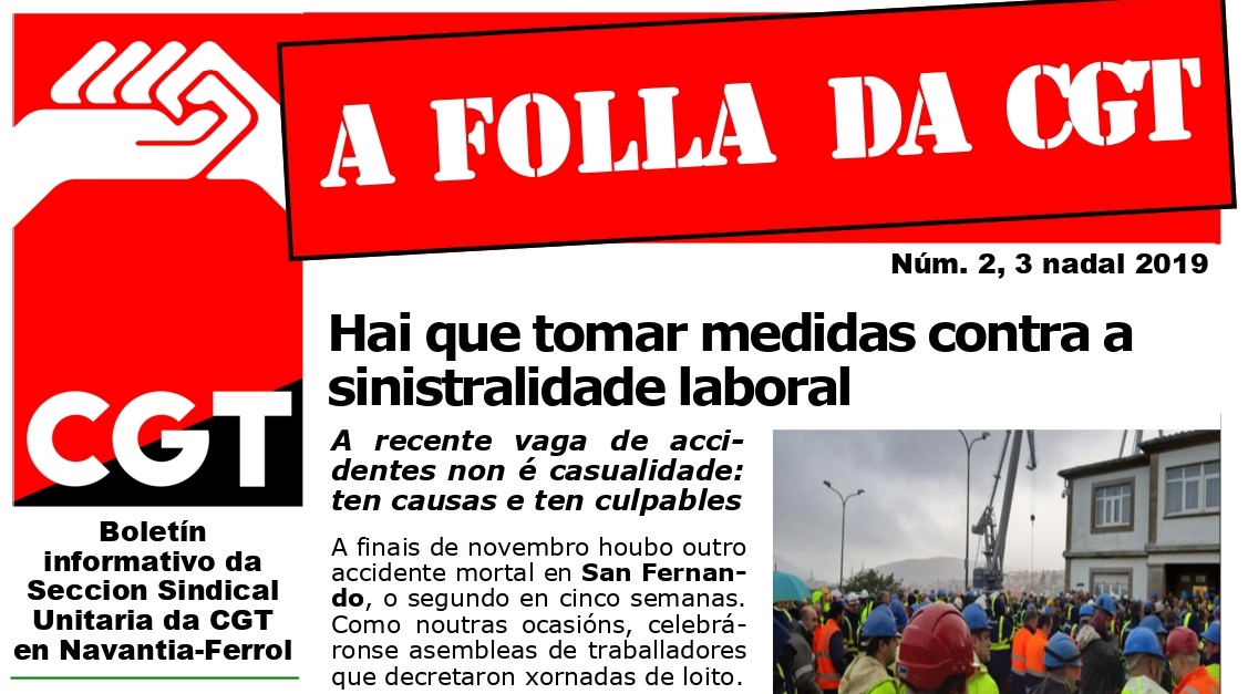 Navantia: sae a Folla da CGTSae o número 2 da Folla da CGT, o Boletín Informativo da Sección Sindical da CGT en Navantia. Sección Sindical Unitaria da CGT en Navantia Ferrol |